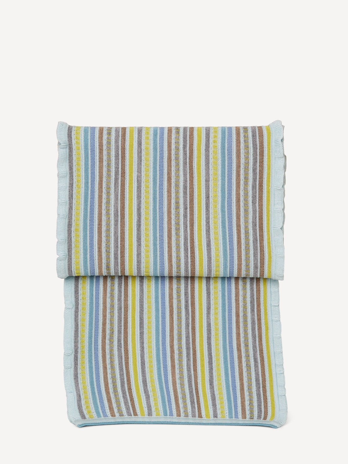 The striped structured knit adds depth and character, creating a refined texture that feels as beautiful as it looks. Drape it loosely around your shoulders, wrap it snugly at the neck, or let it hang freely for an effortless silhouette.