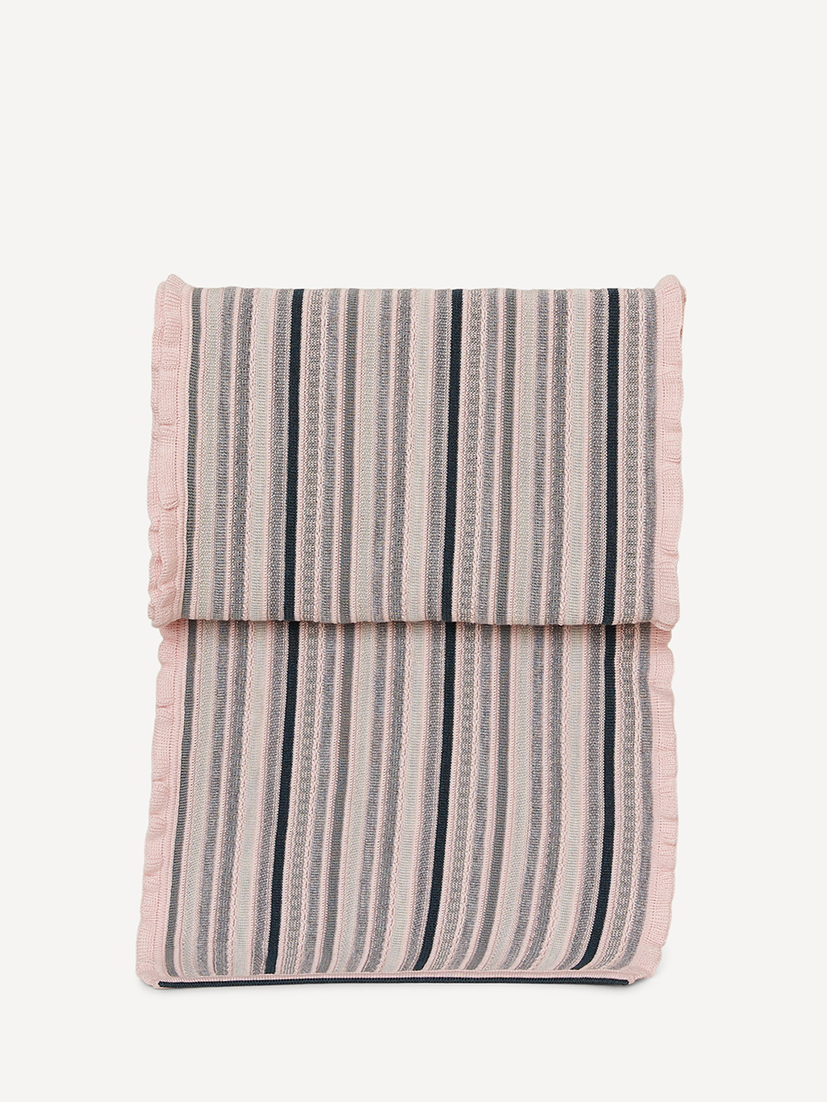 The striped structured knit adds depth and character, creating a refined texture that feels as beautiful as it looks. Drape it loosely around your shoulders, wrap it snugly at the neck, or let it hang freely for an effortless silhouette.