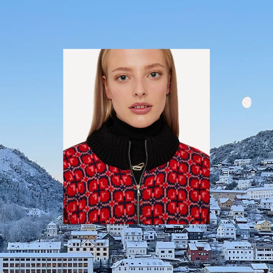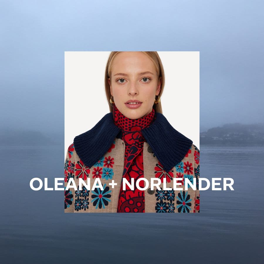 The Mixed Media Jacket is where Oleana’s playfulness meets Norlenders distinctive and qualities of locally sourced wool. It’s actually made at both factories, the production process including a boat ride across the fjord.