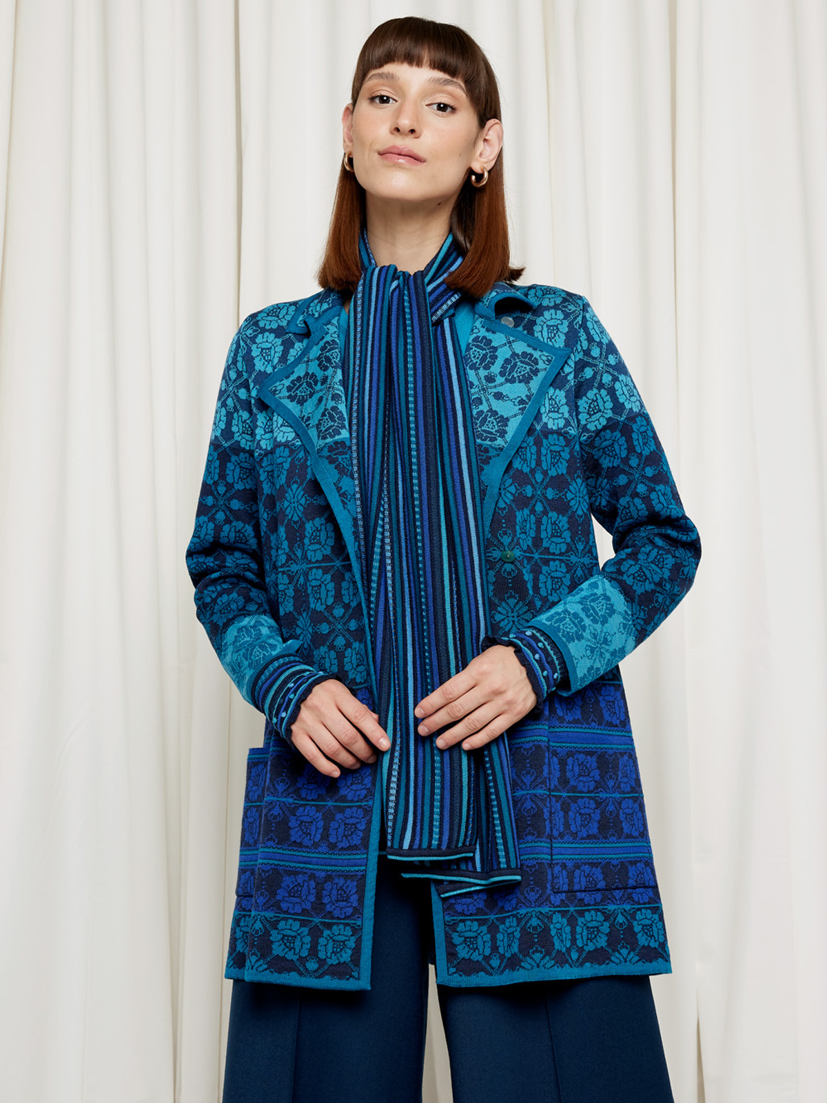 Your go-to scarf for all seasons. Soft and versatile with striped structured knit.