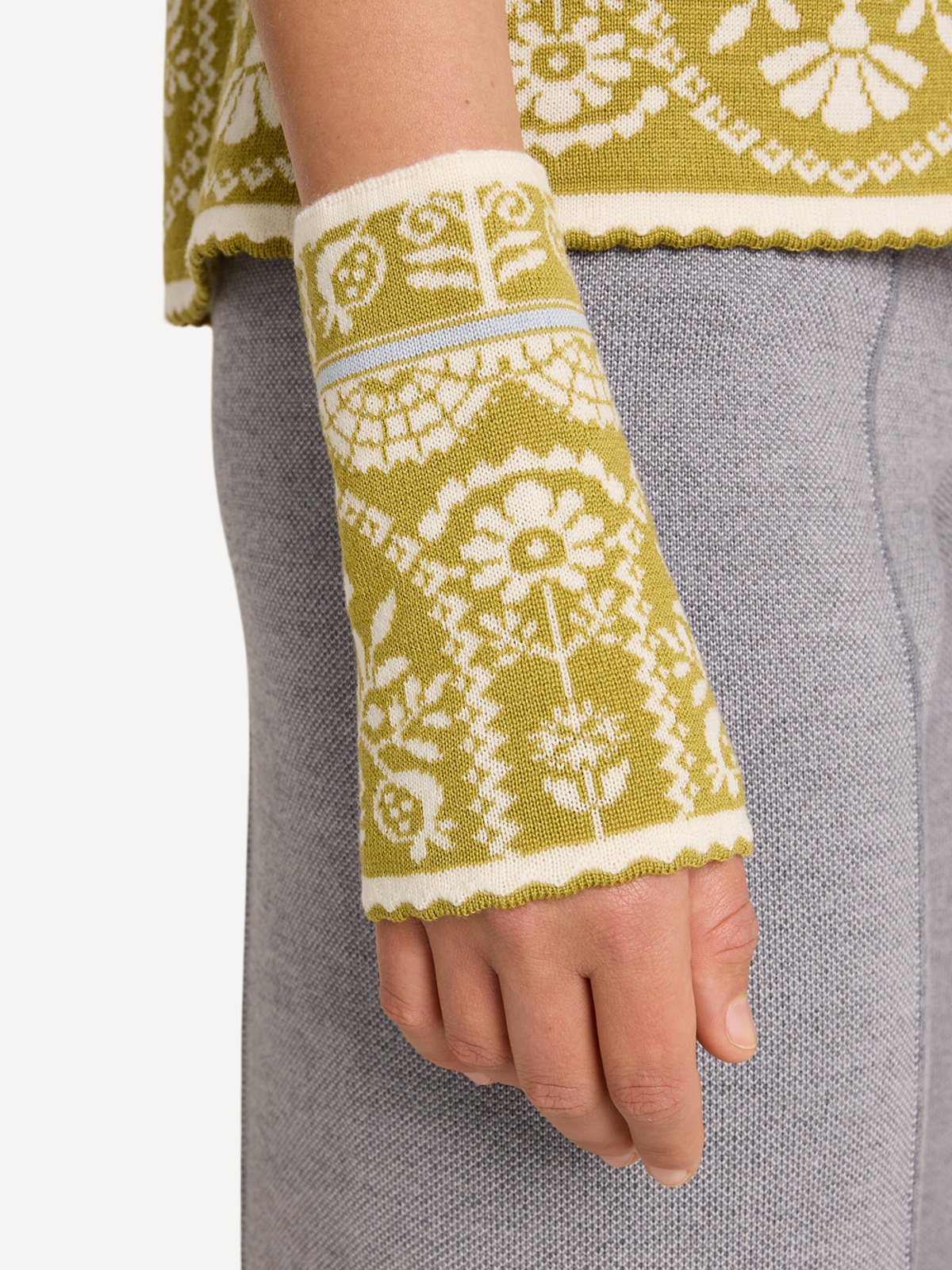 Featuring a timeless pattern from our archives, first released in 2005 – now refreshed in new colours. Knitted from soft merino wool and silk, they pair beautifully with the Oddrun cardigan and scarf for a coordinated look or can be styled with your wardrobe favourites for a personal touch. Perfect for both city styling and an effortlessly chic mountain look.