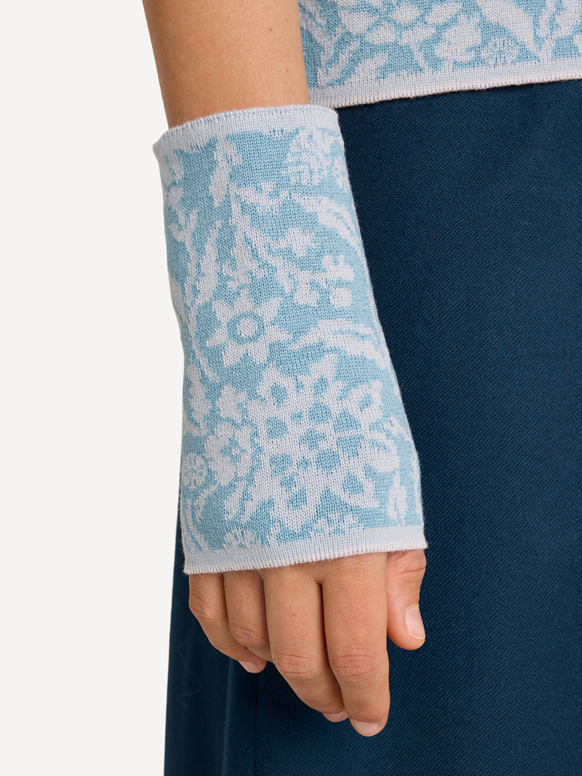 Reintroducing a cherished pattern from 2006: Signe wristlets, featuring the same floral pattern from our archives as our iconic Signe cardigan. This timeless accessory boasts an updated design and now comes in refreshed colours, seamlessly blending nostalgia with modern flair.